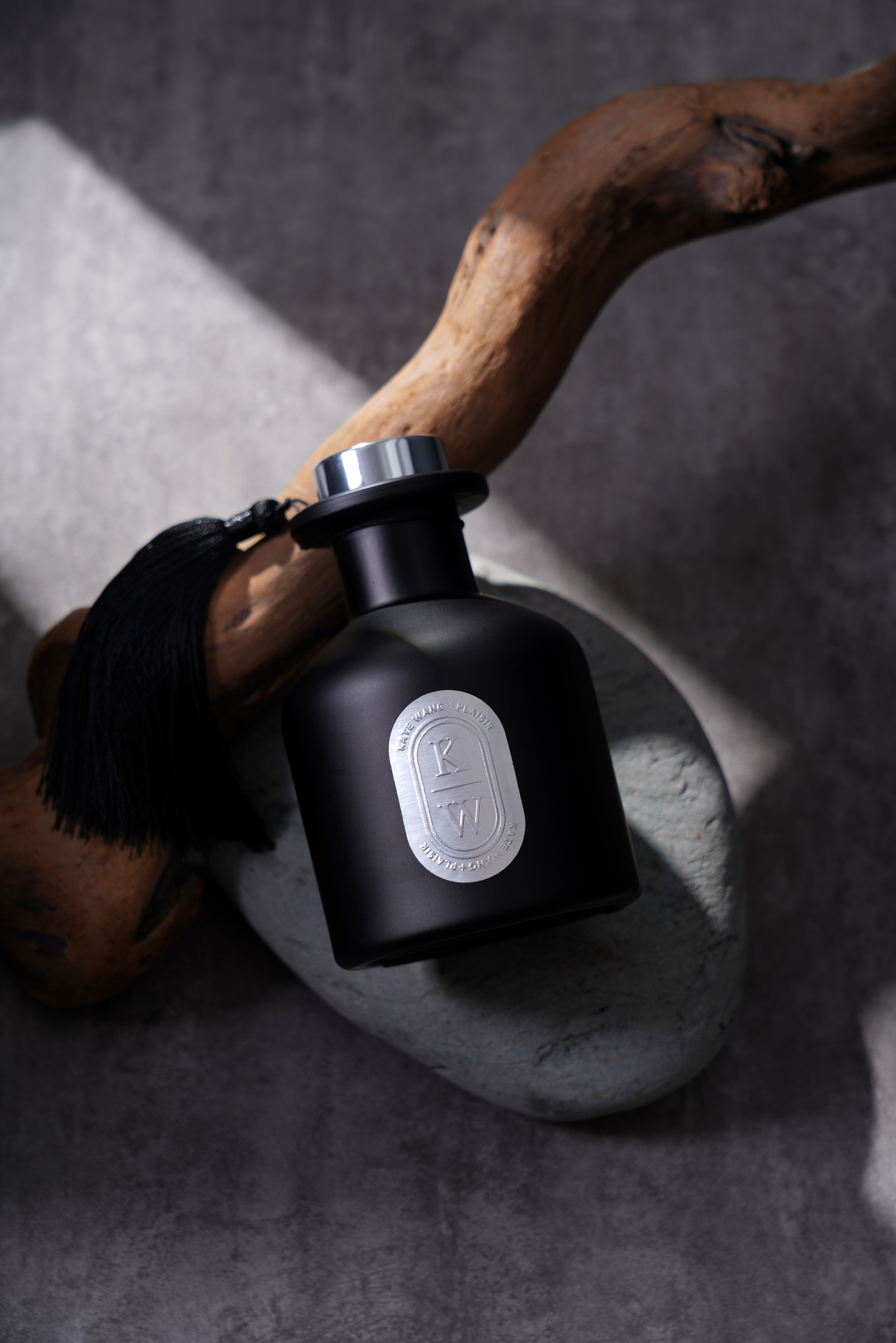 瓶身採霧黑玻璃搭配流蘇飾帶,黑象徵成熟與力量,流蘇象徵細膩與優雅。靜置於空間中,彷彿能呼吸的香氛藝術品,以沈穩姿態喚醒靈魂節奏。